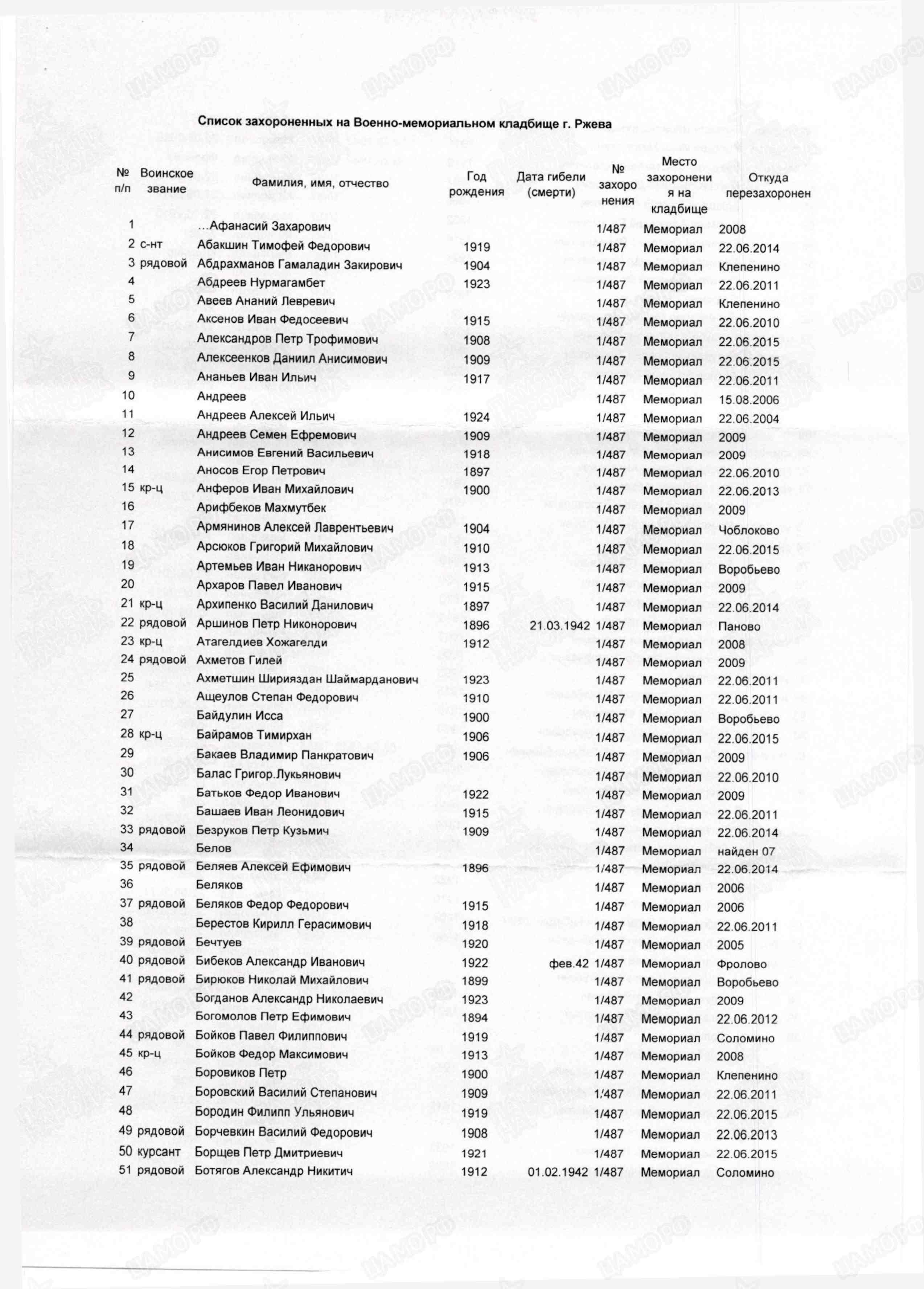 | Название захоронения | Ржев |