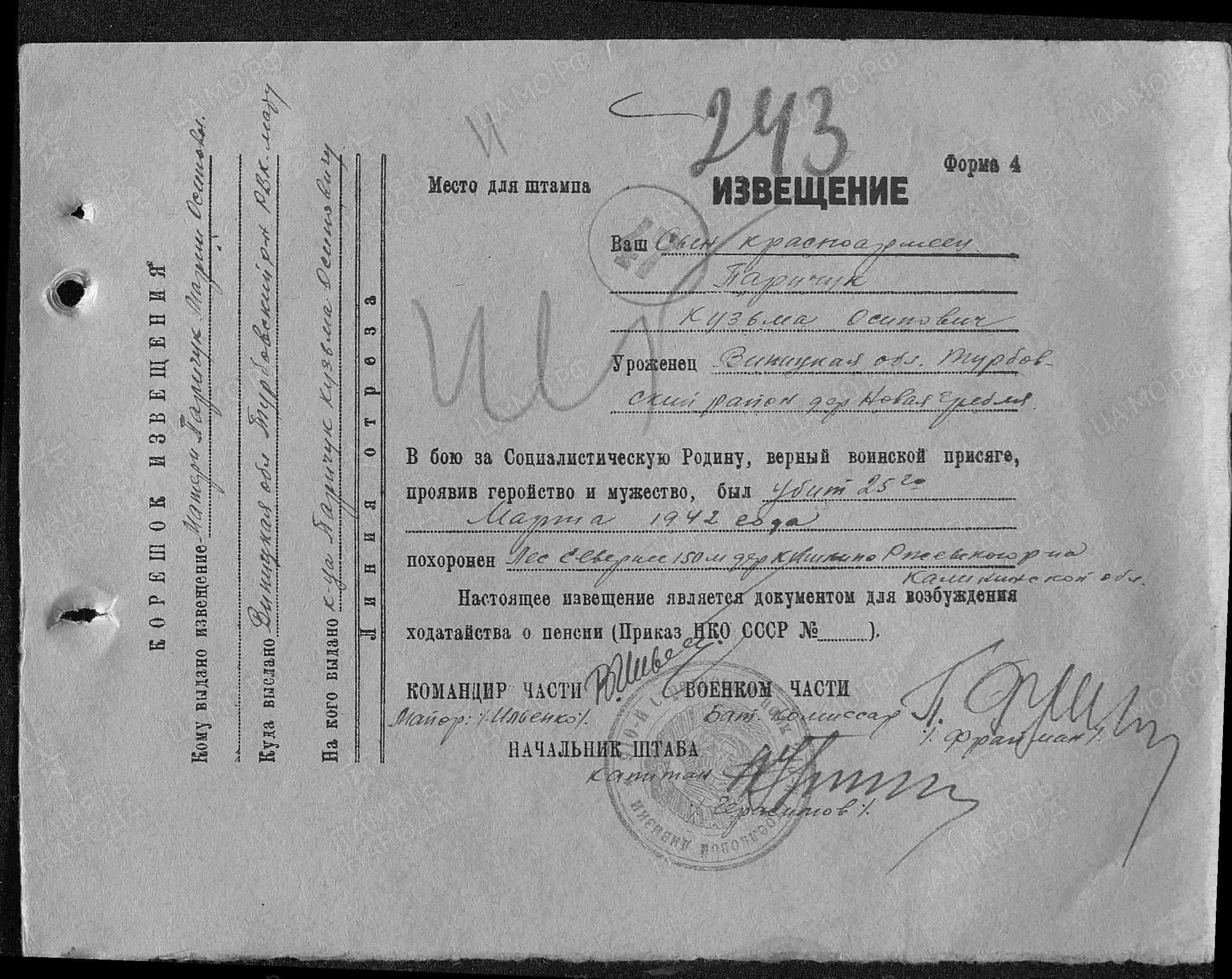 | Призван РВК | Турбовский РВК, Украинская ССР, 1939 |