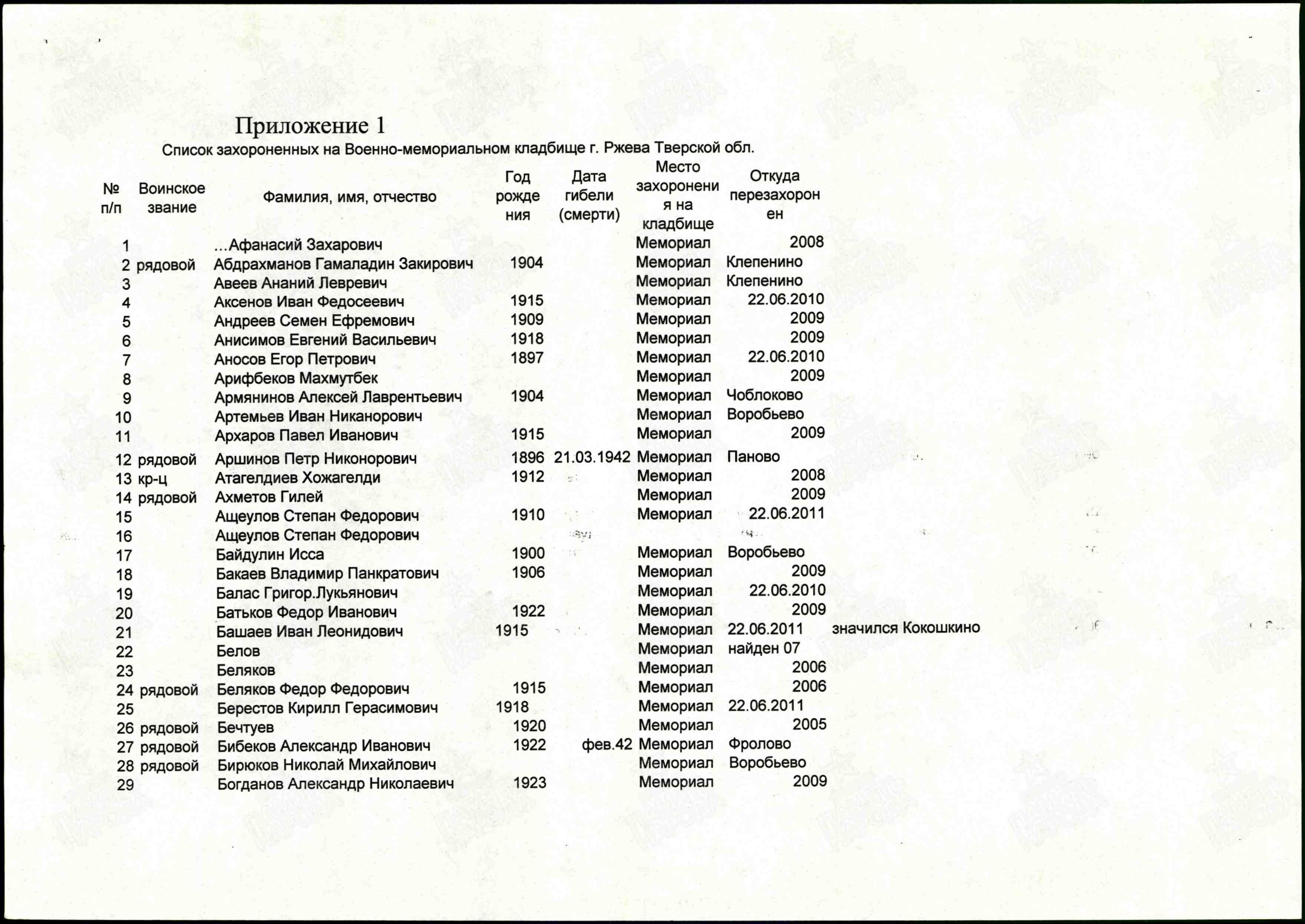 | Название захоронения | Ржев |