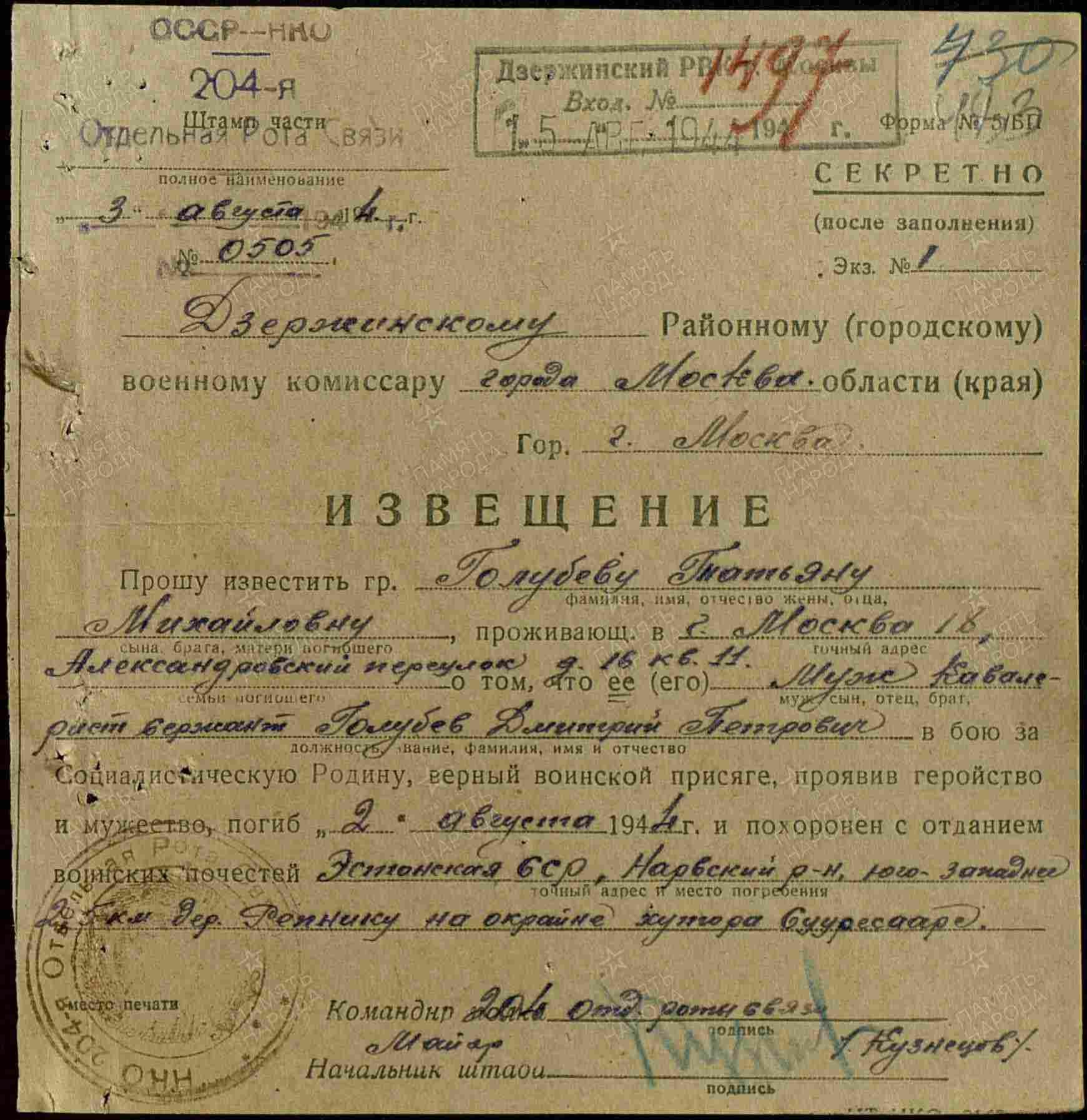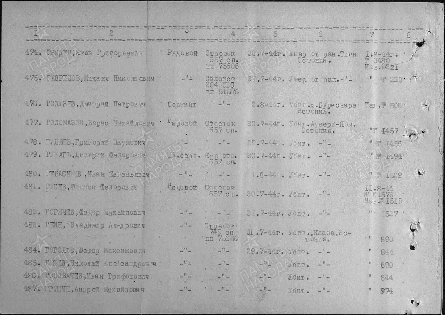 | Дата выбытия | 02.08.1944 |