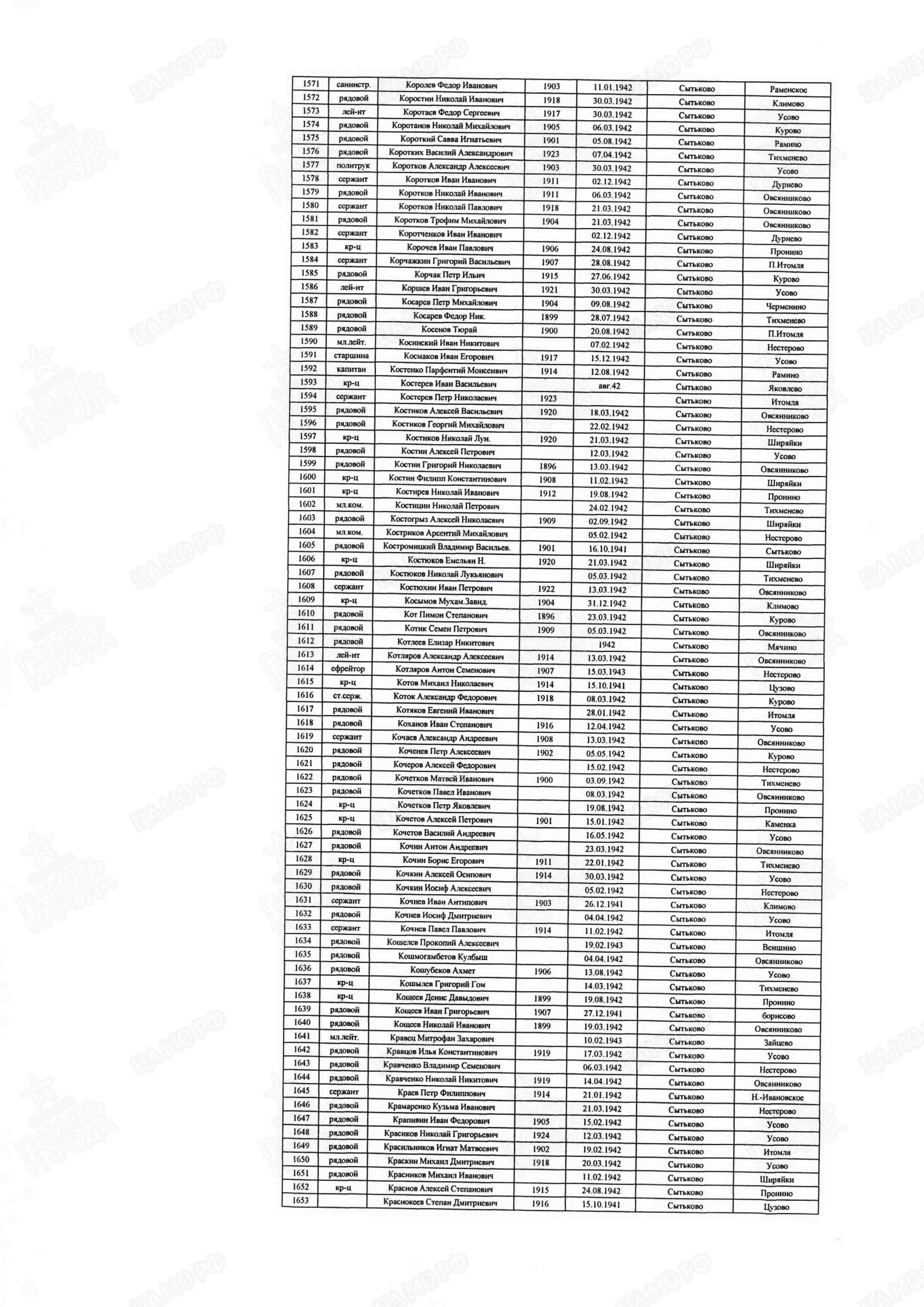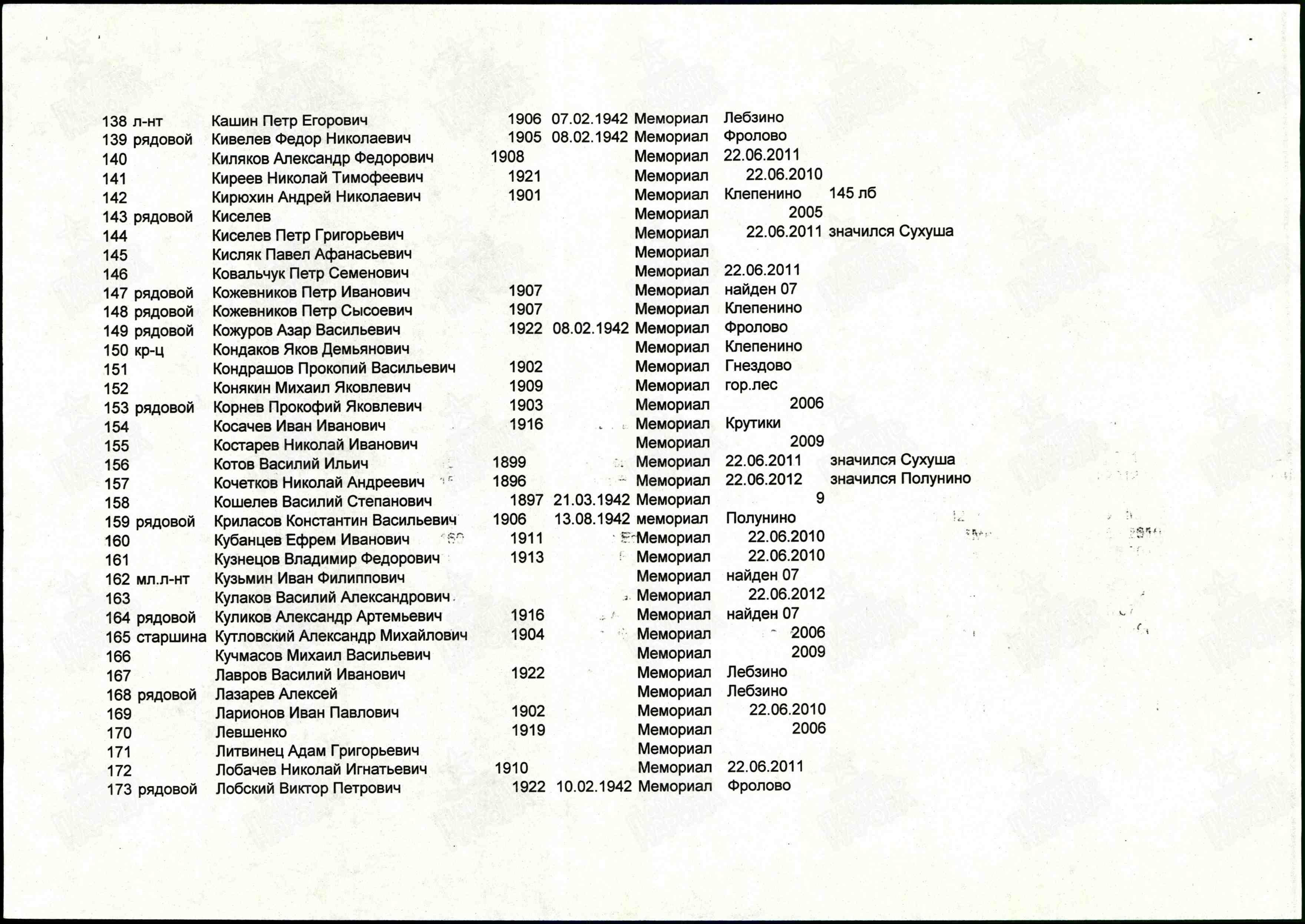 | Название захоронения | Ржев |