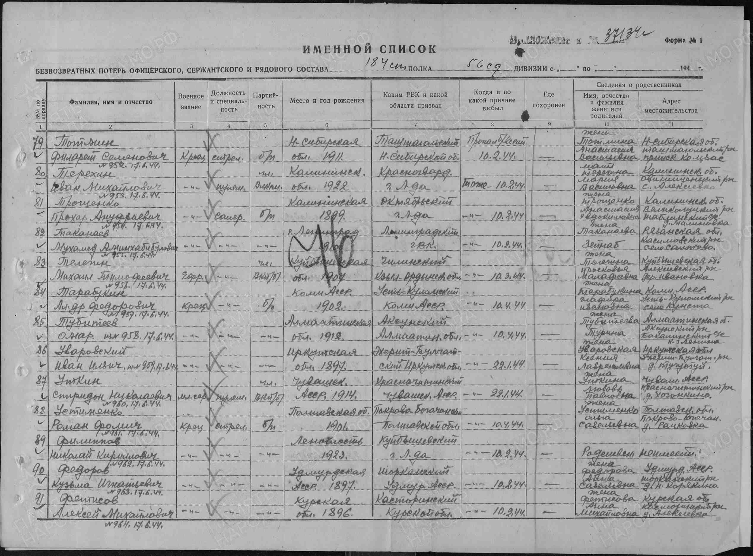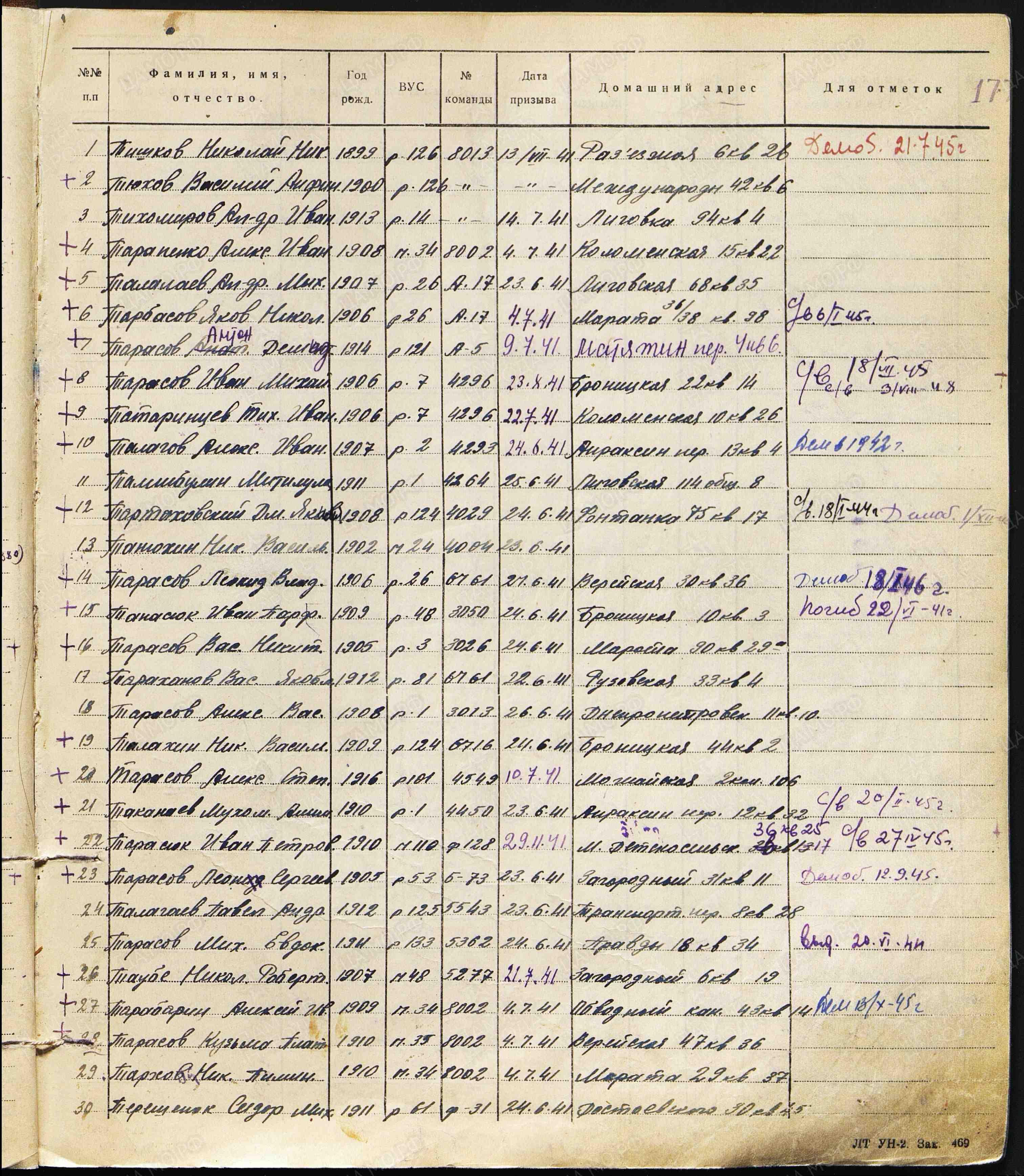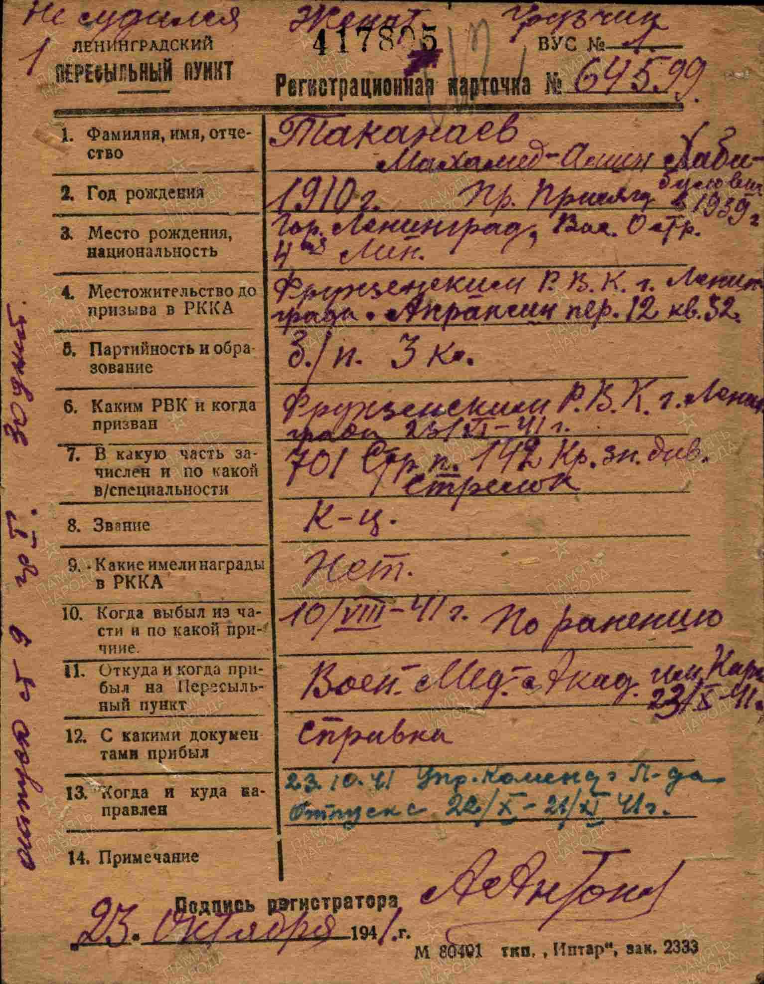 | Призван РВК | Ленинградский ГВК, г.Ленинград |