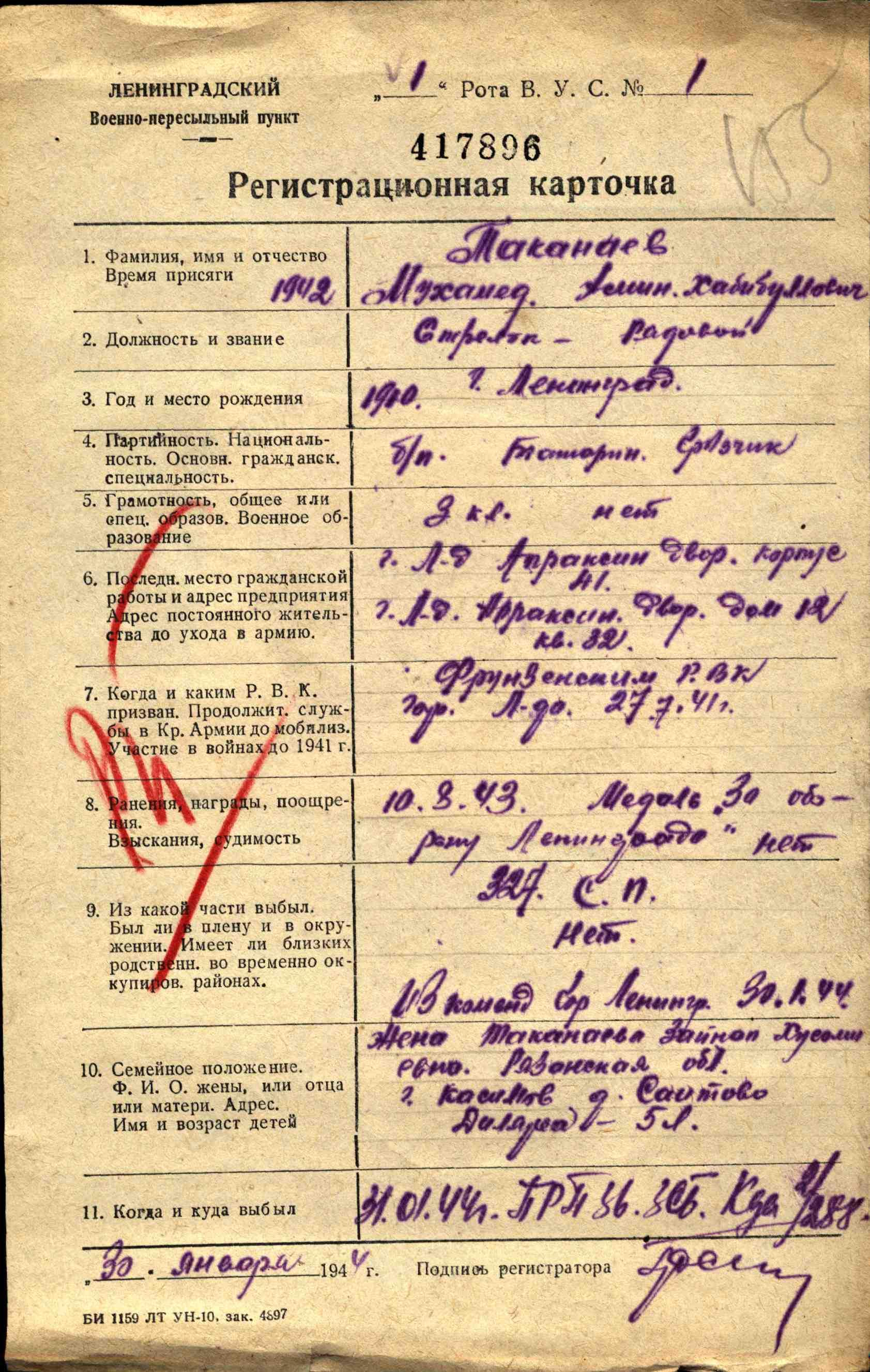 | Населенный пункт | г. Ленинград |