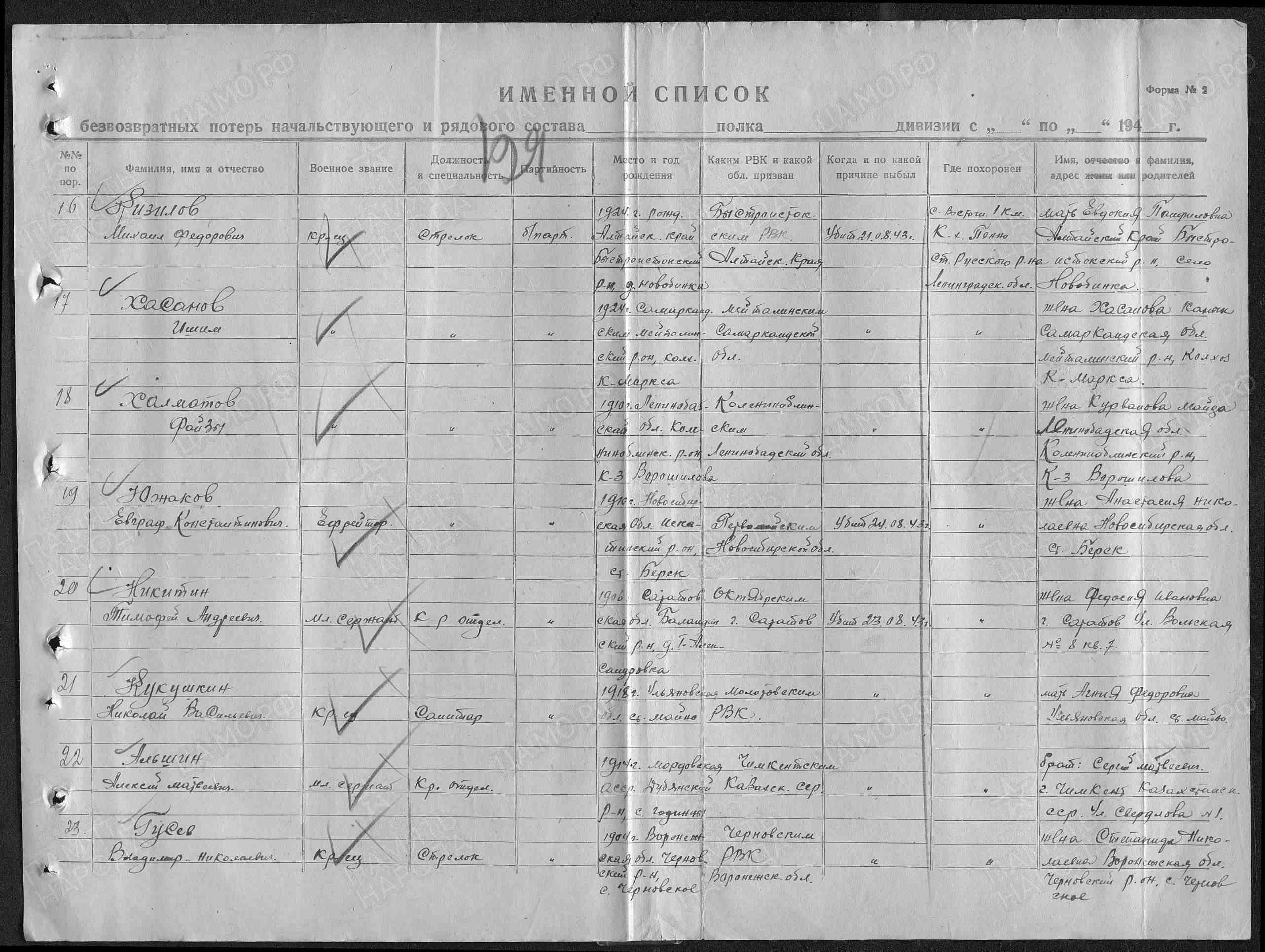 | Призван РВК | Черновский РВК, Воронежская обл. |